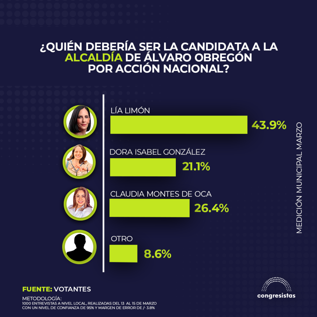 De acuerdo con la más reciente medición municipal de marzo realizada por «Votantes», Lía Limón se posiciona como la aspirante